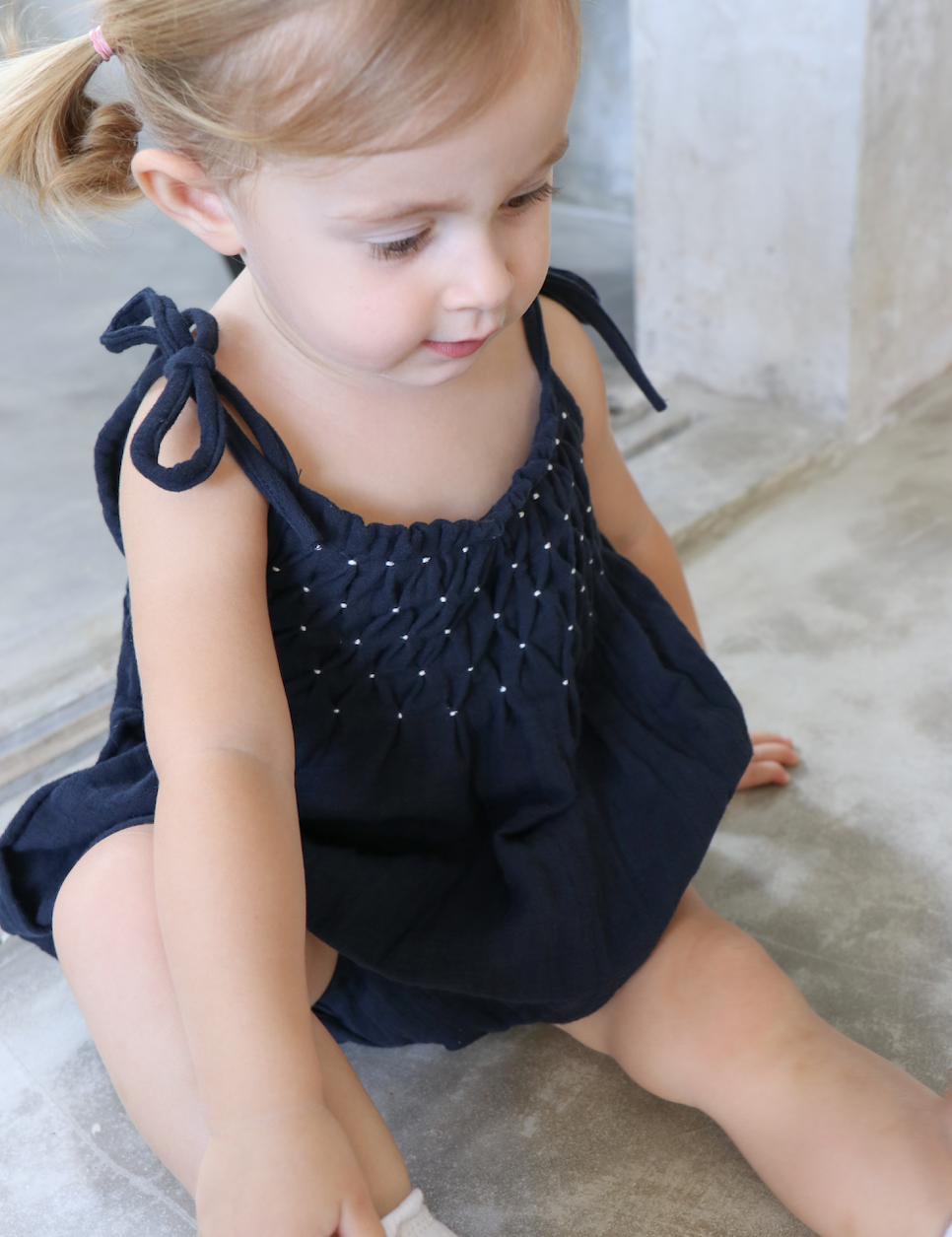 raphael smocked romper - navy